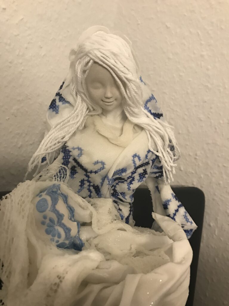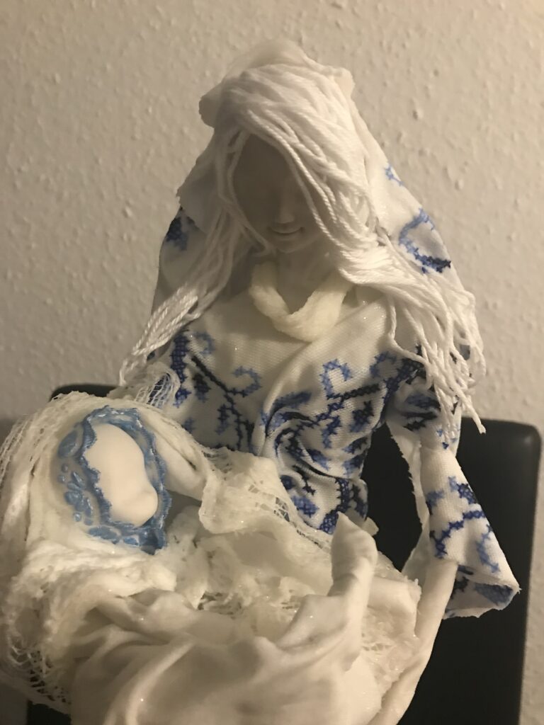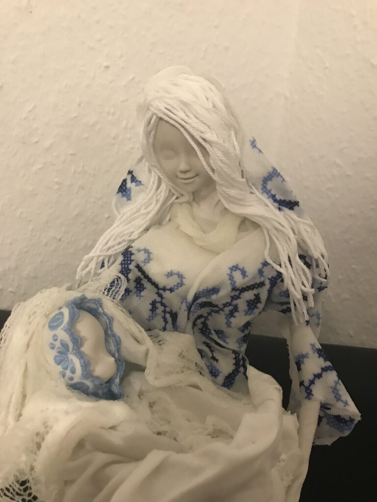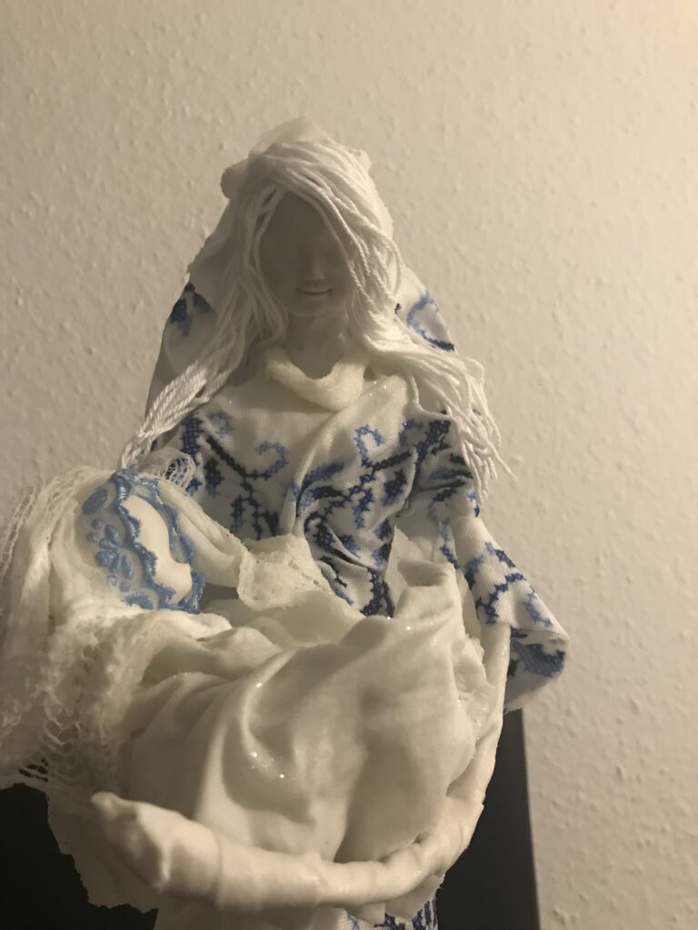 Socha anjel s dieťaťom – biela
