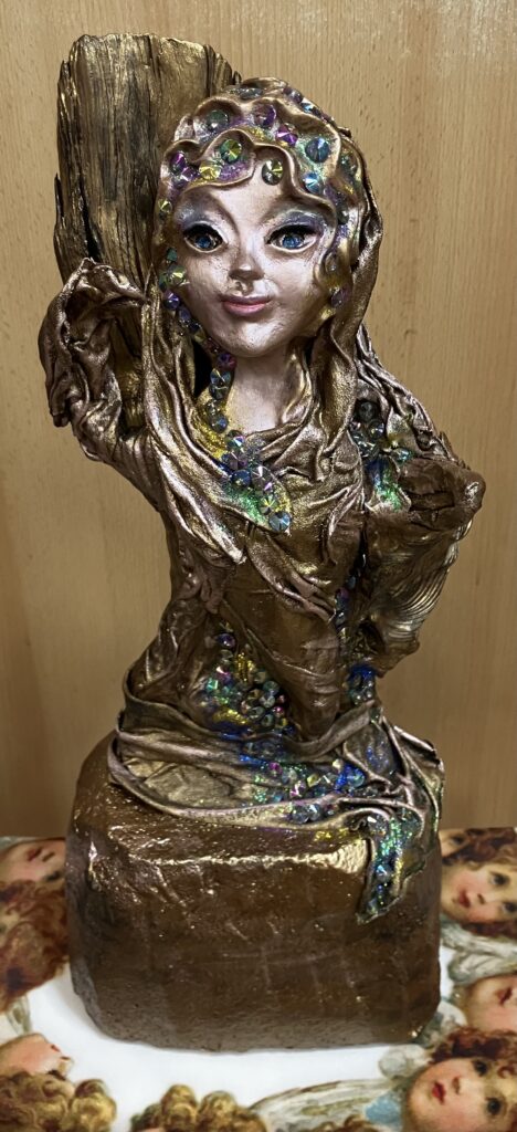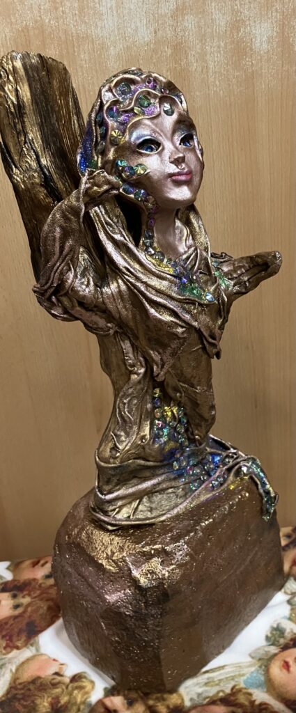 Socha anjel s klenotmi – bronzová