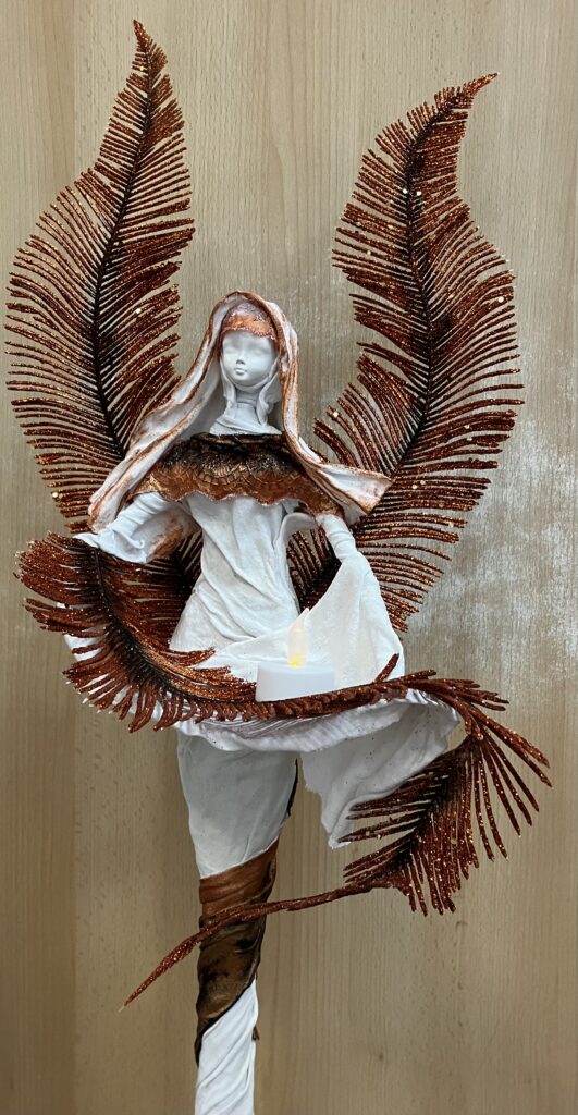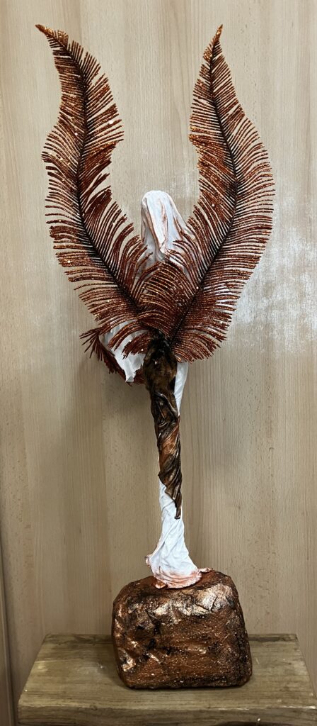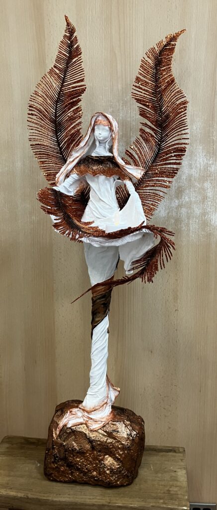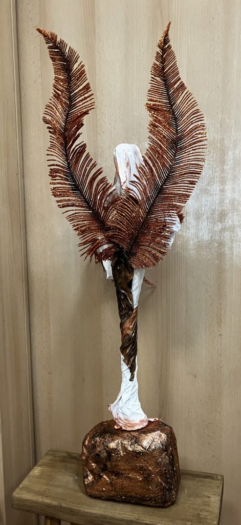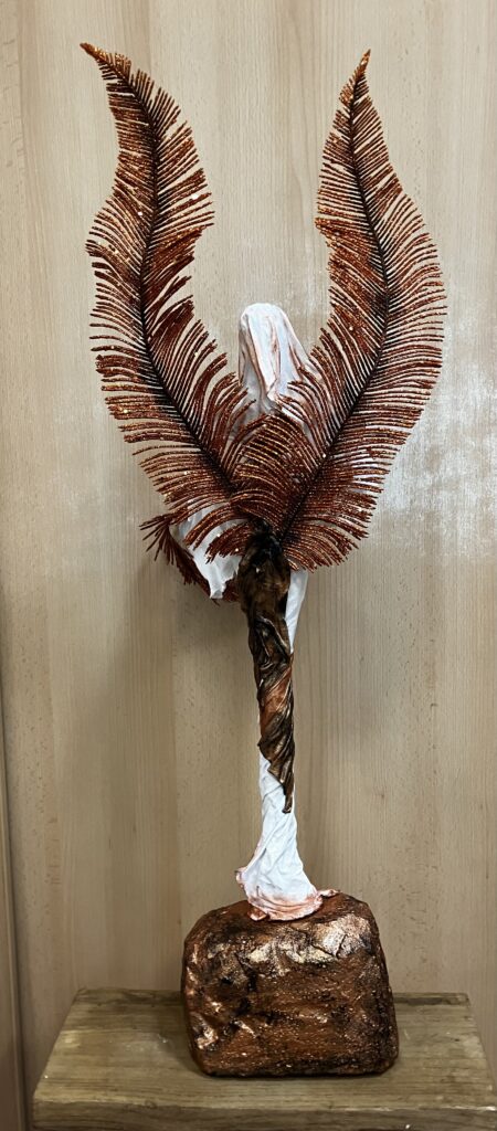 Socha anjel s perovými trblietavými krídlami