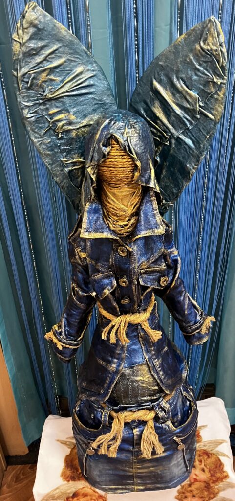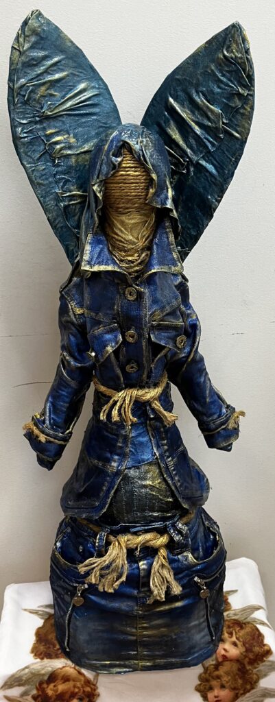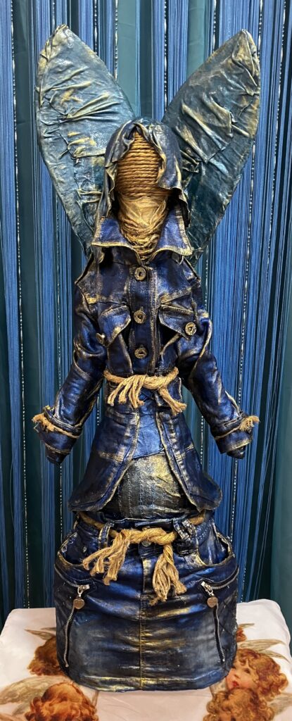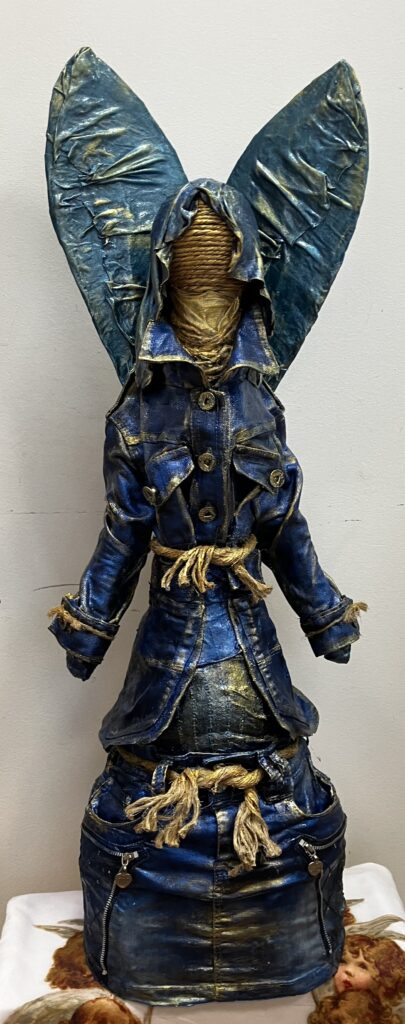 Socha anjel so špagátovou tvárou – modrá
