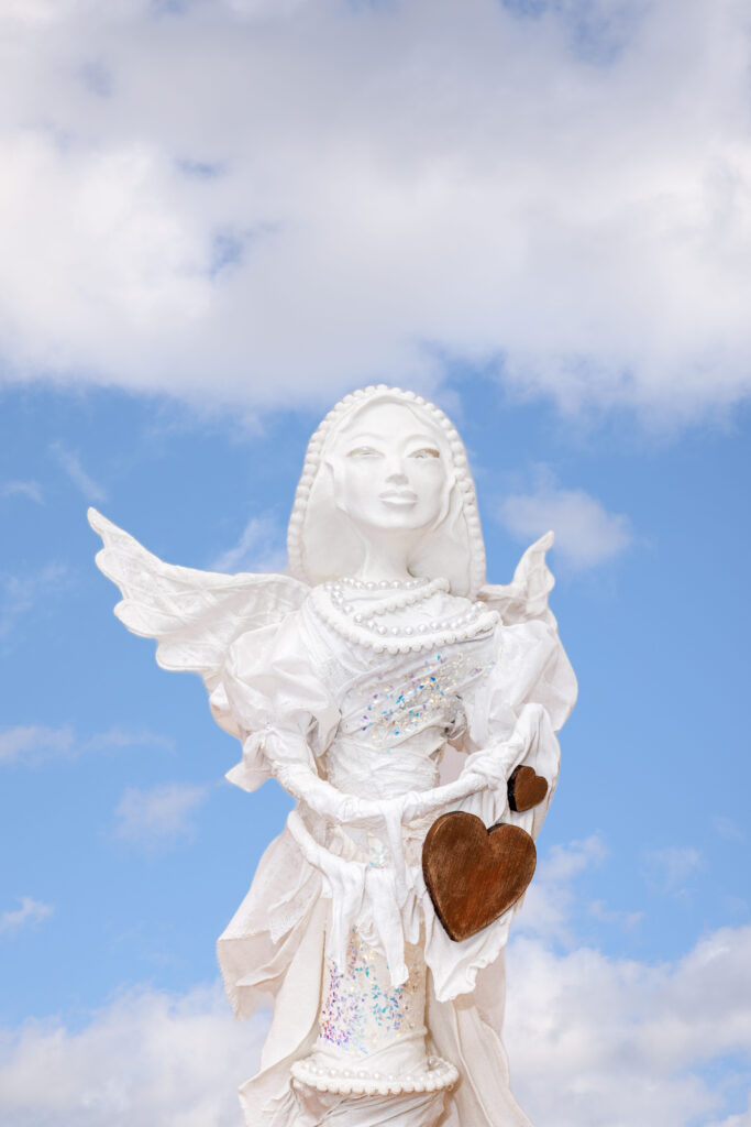Socha anjel so srdcom – biela