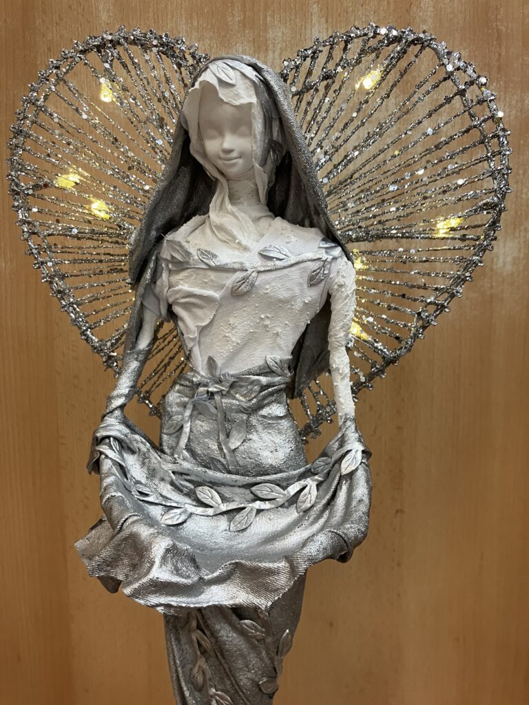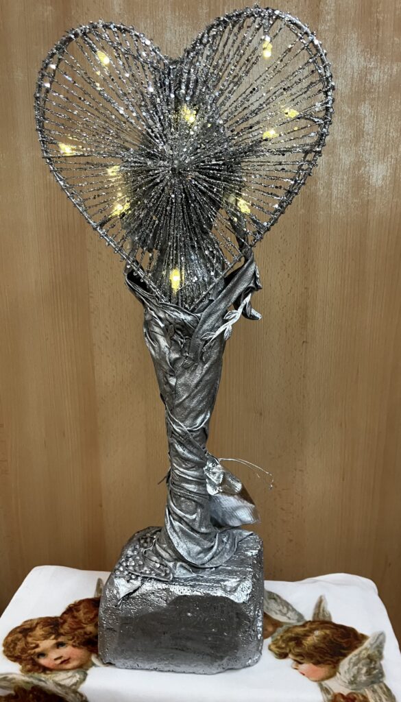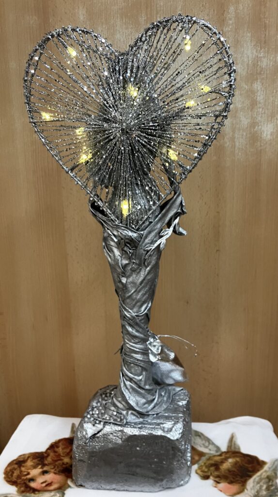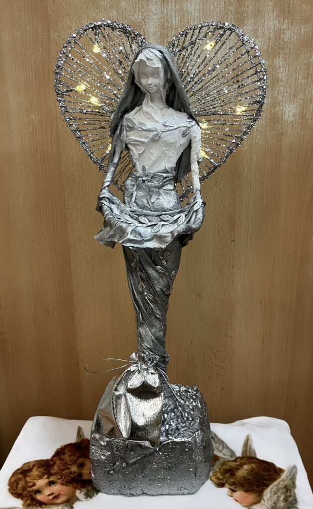 Socha anjel so srdcovou žiarou – strieborná