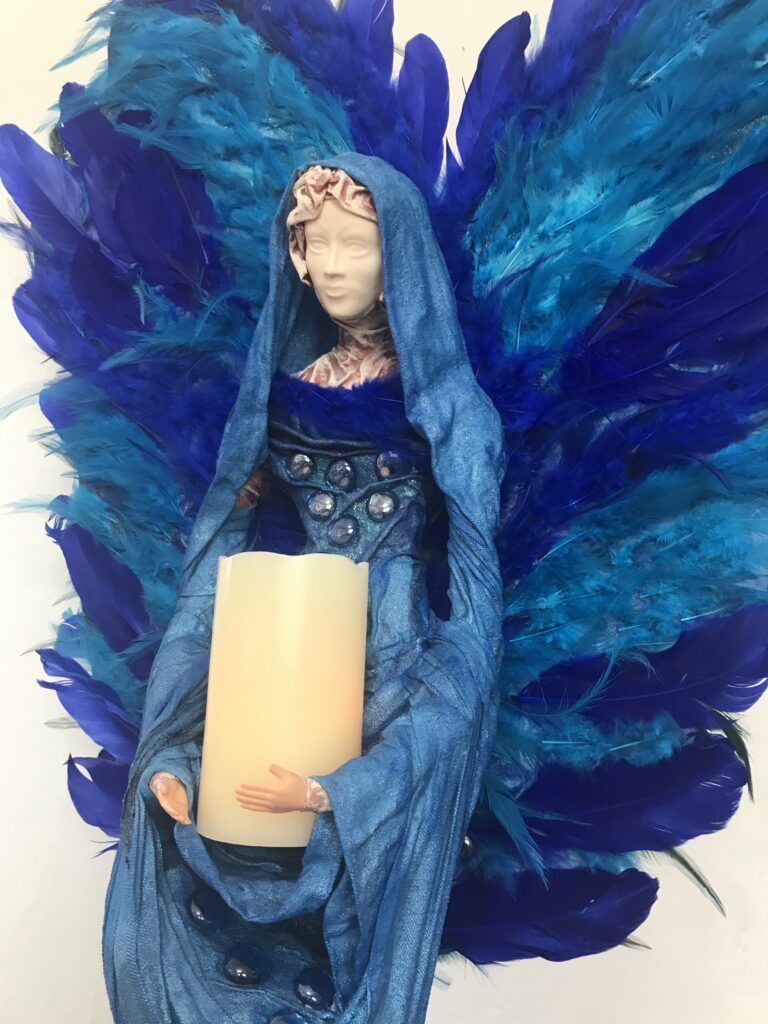 Socha anjel so sviecou – modrá