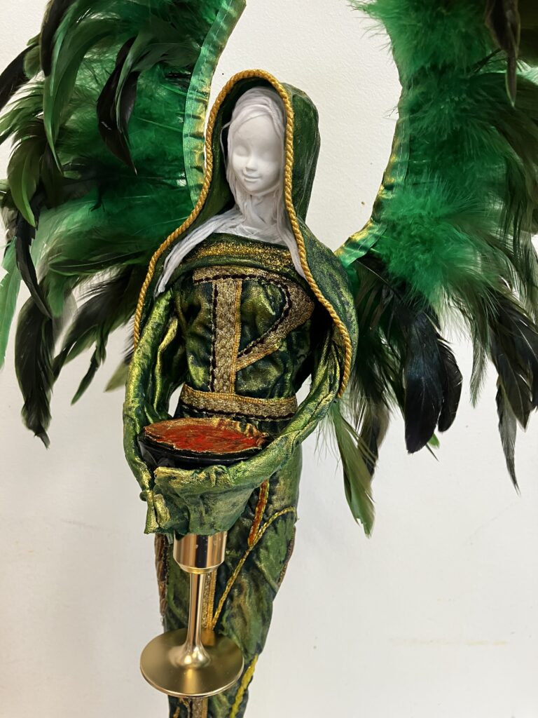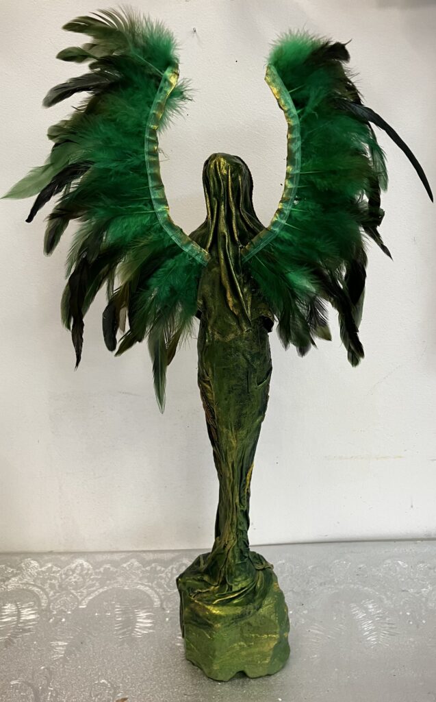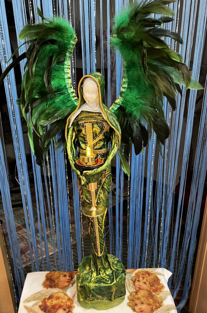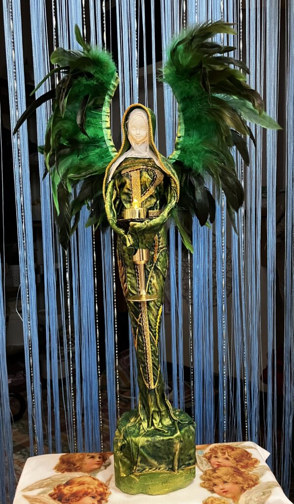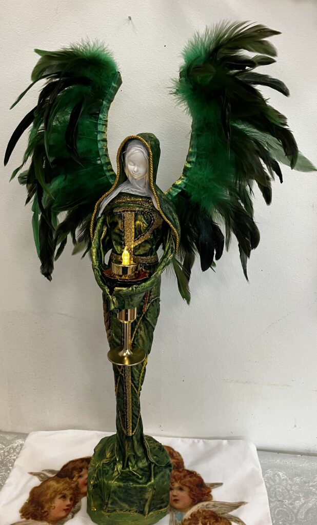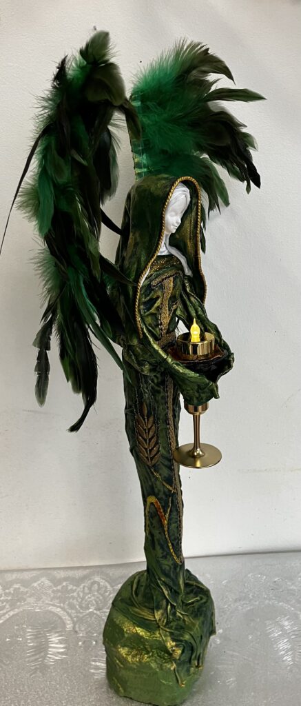 Socha anjel so zlatou sviecou – zelená