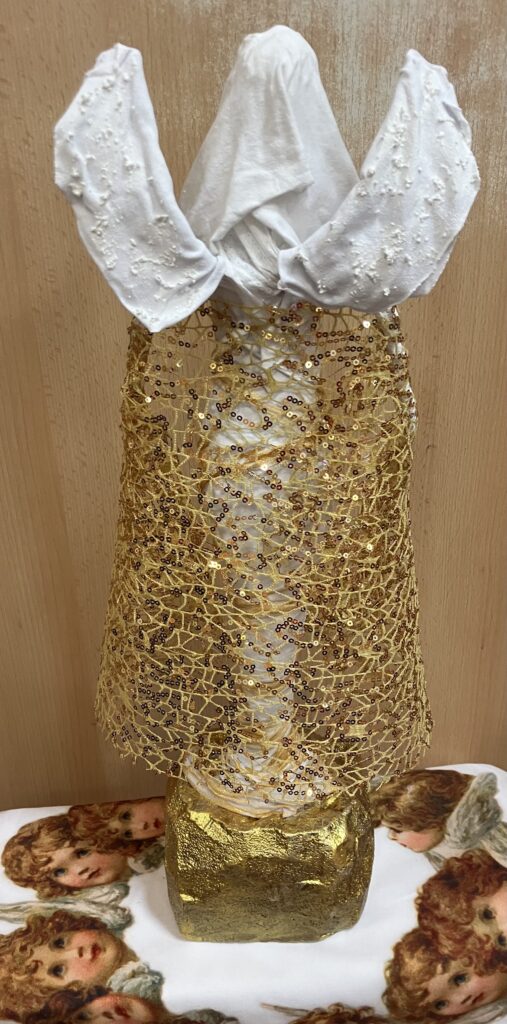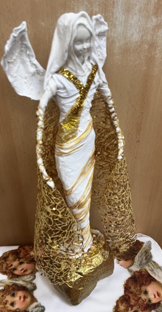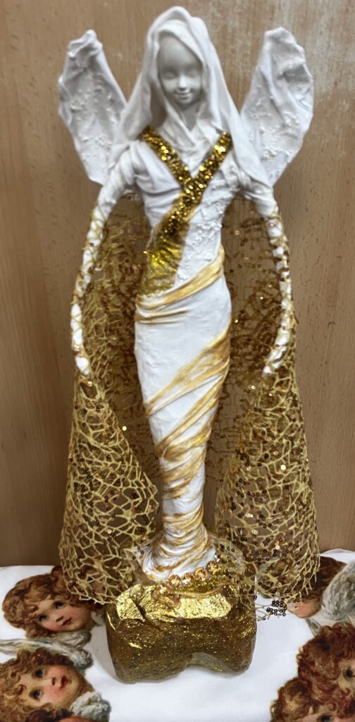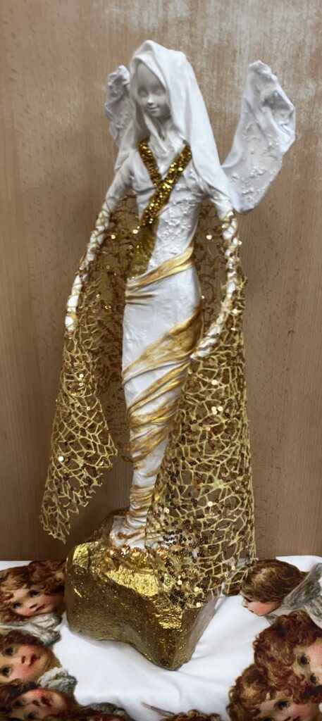Socha anjel so zlatým plášťom