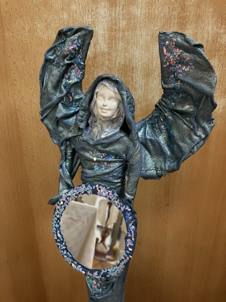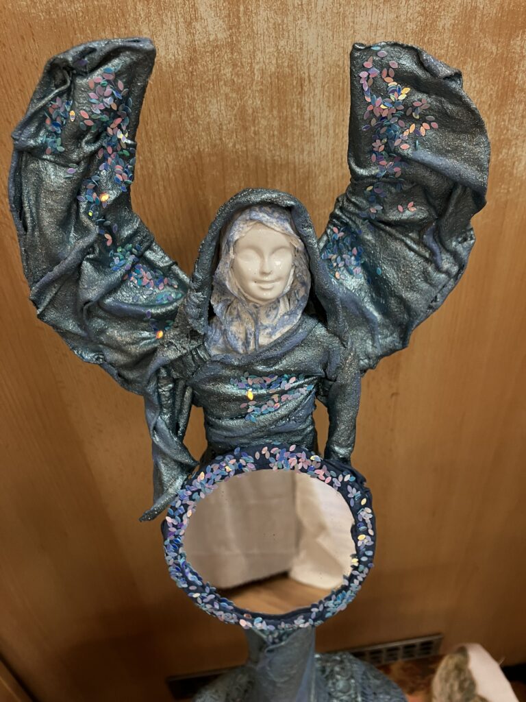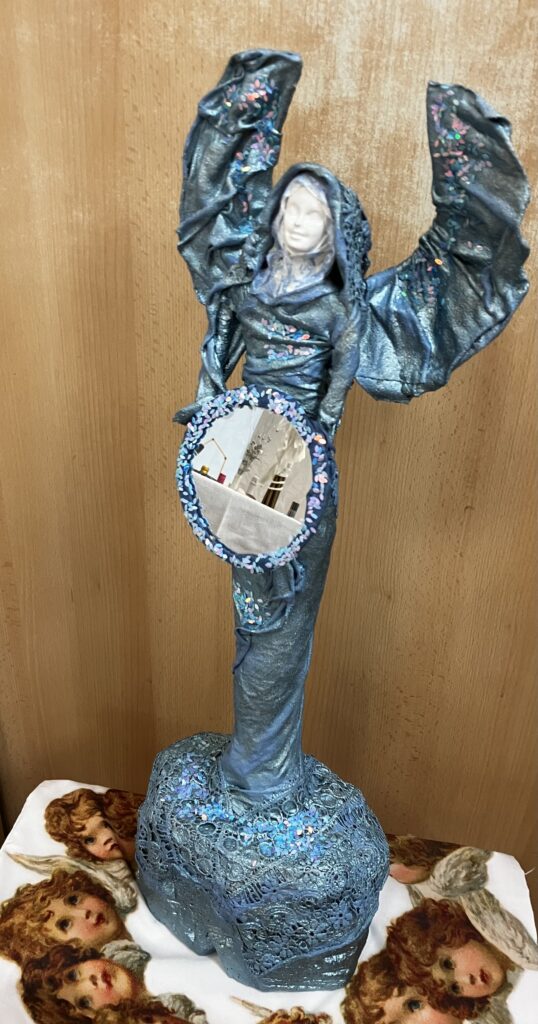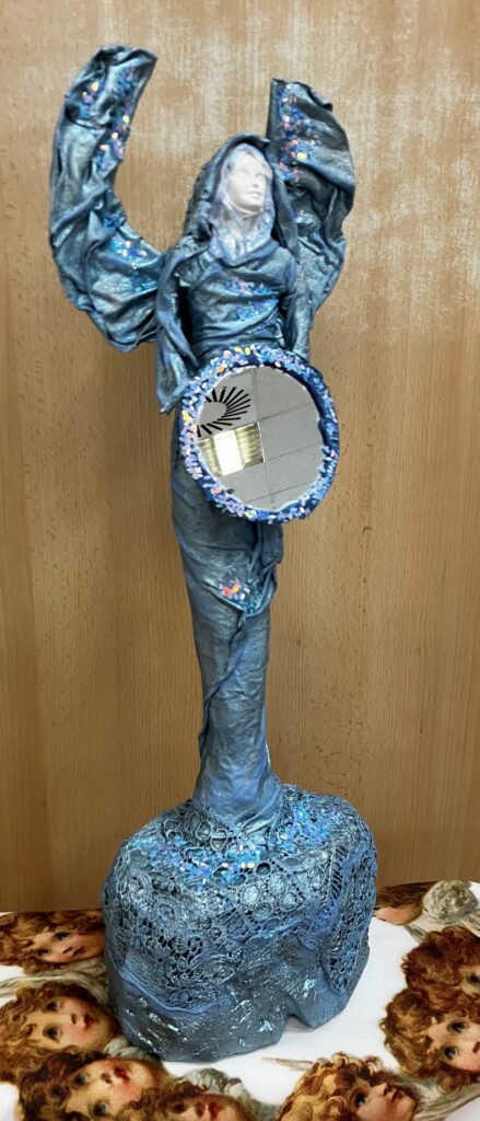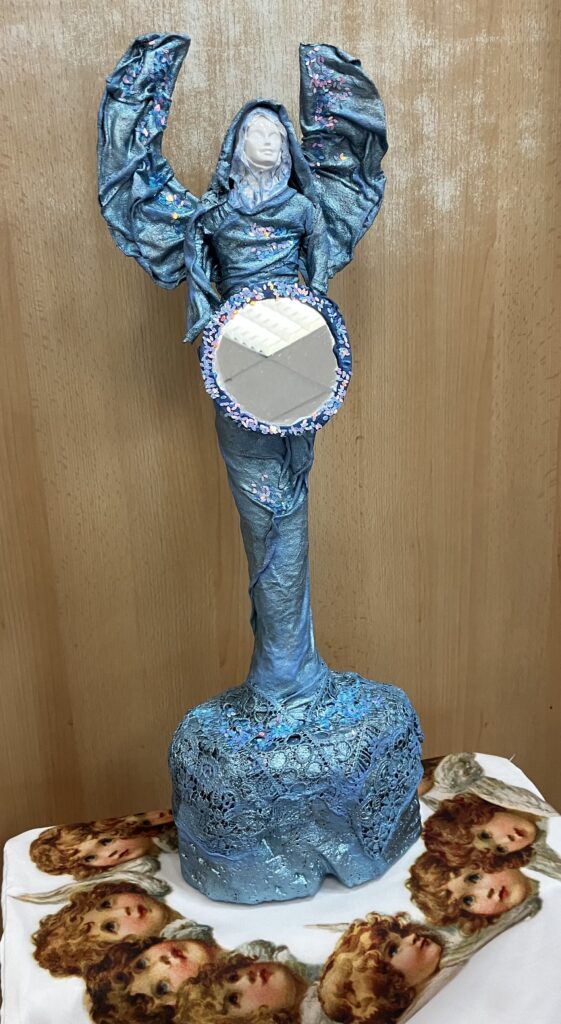 Socha anjel so zrkadlom – modrá
