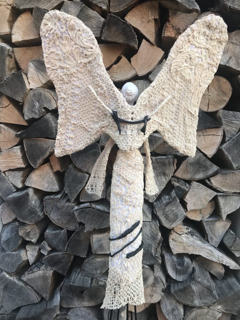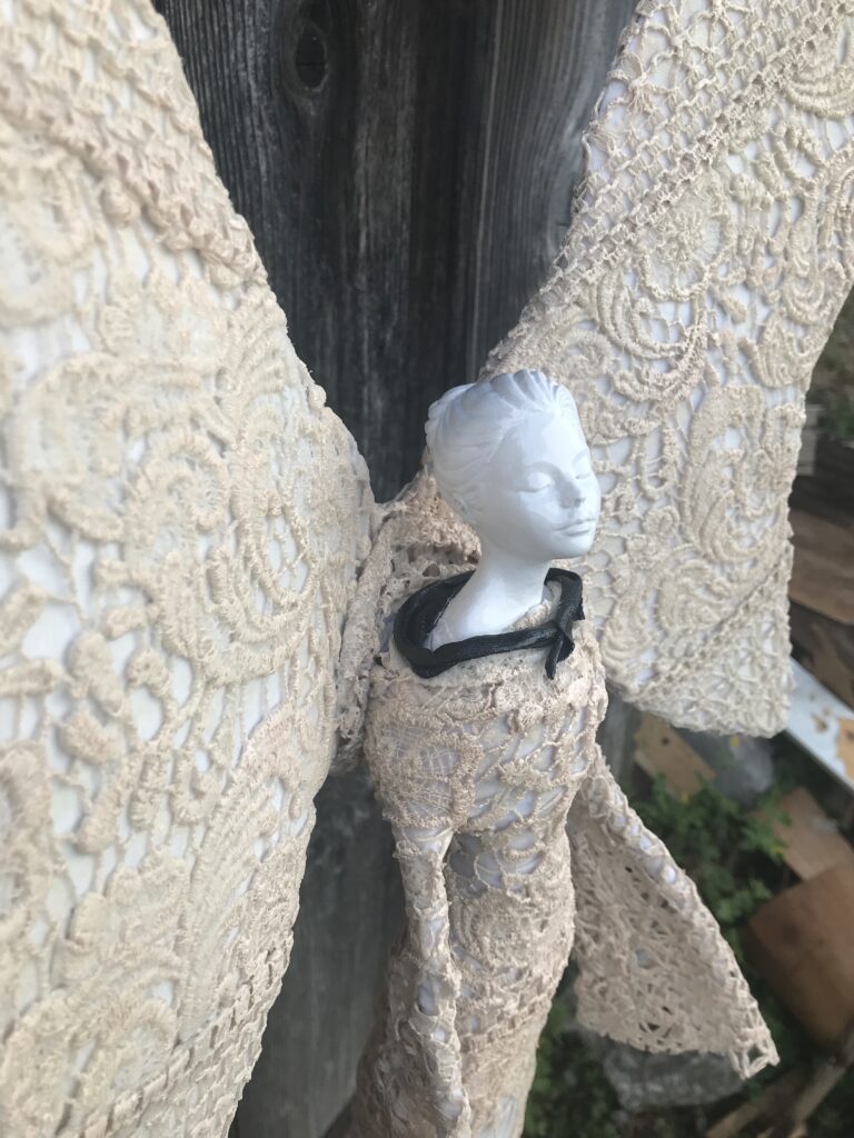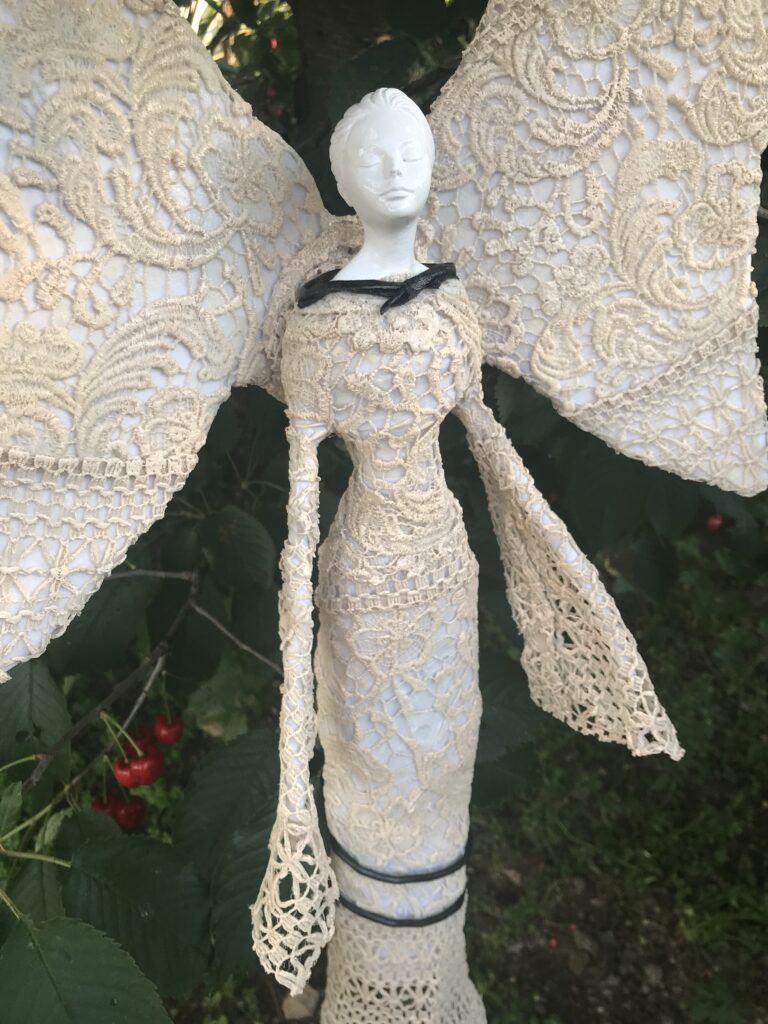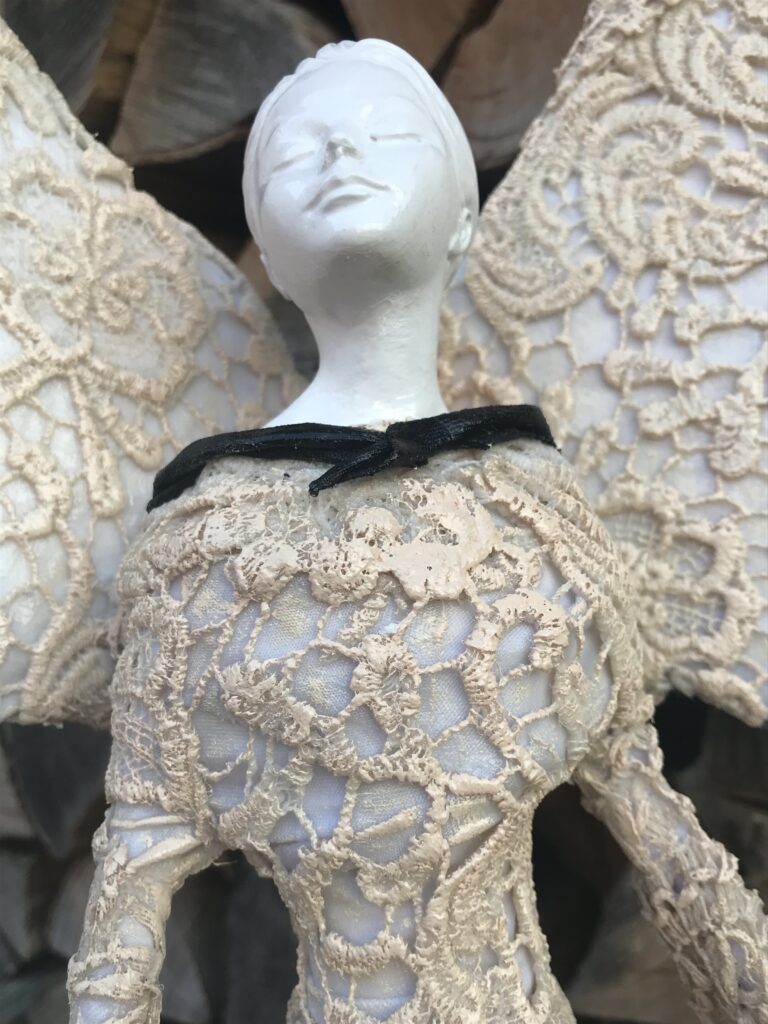 Socha anjel v šatách – krémová
