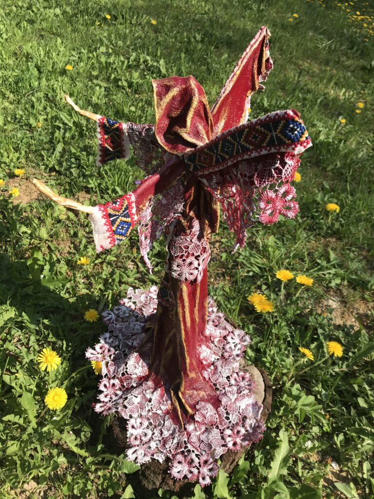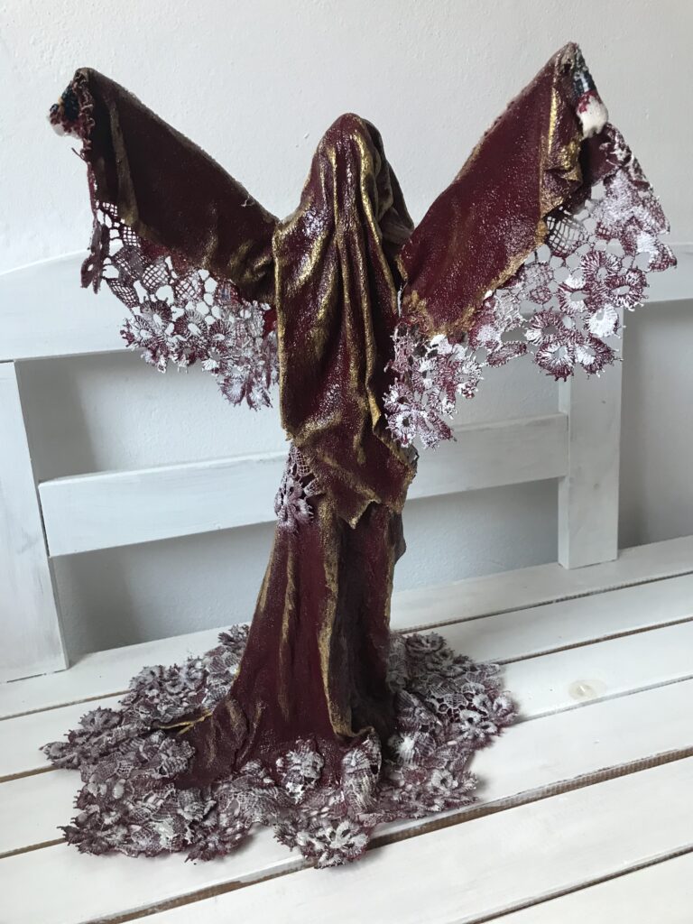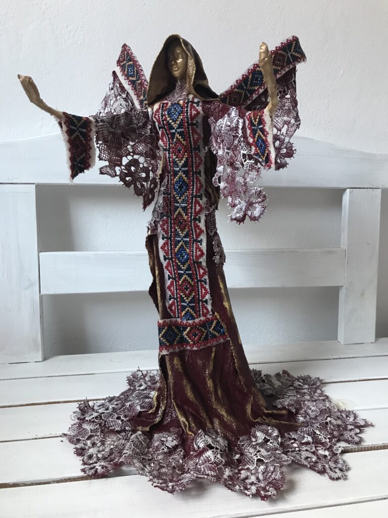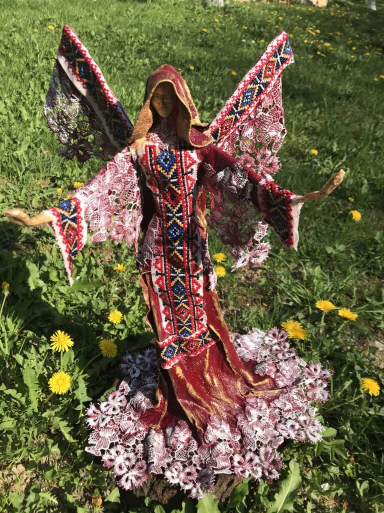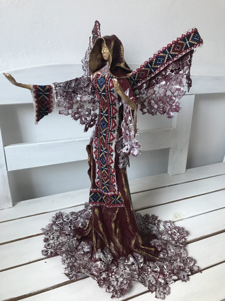 Socha anjel v tradičných šatách – červená