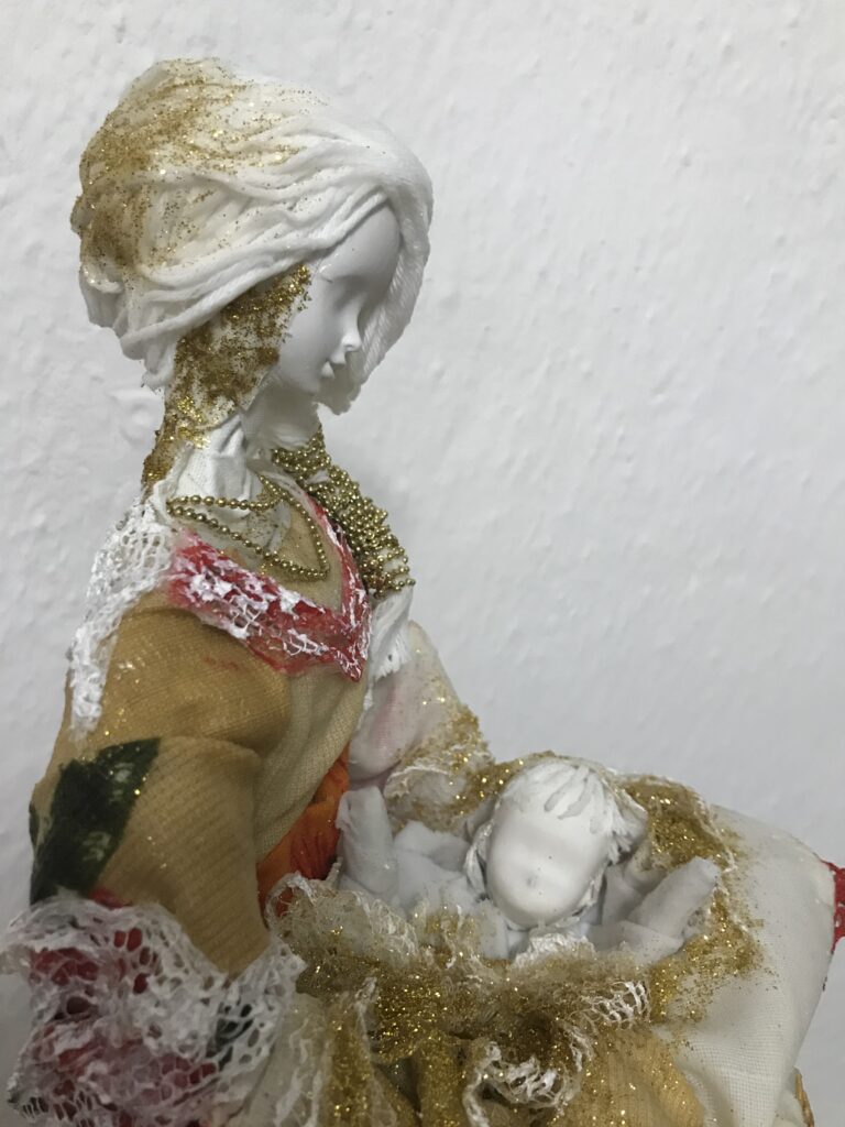 Socha matka s dieťaťom – zlatá
