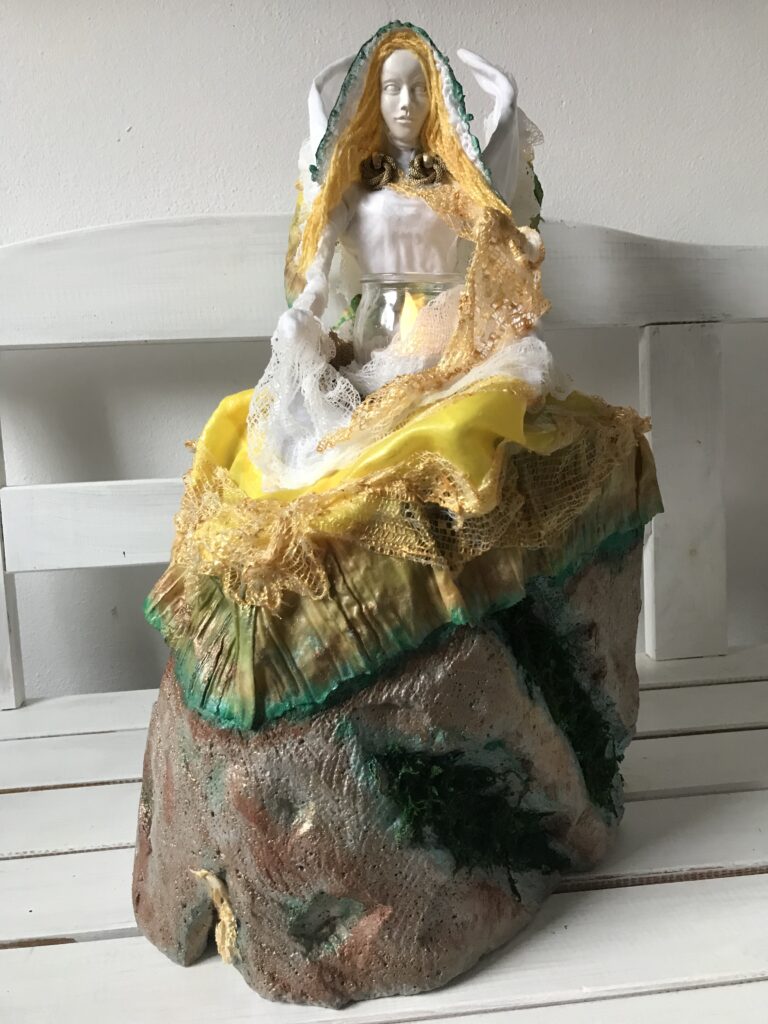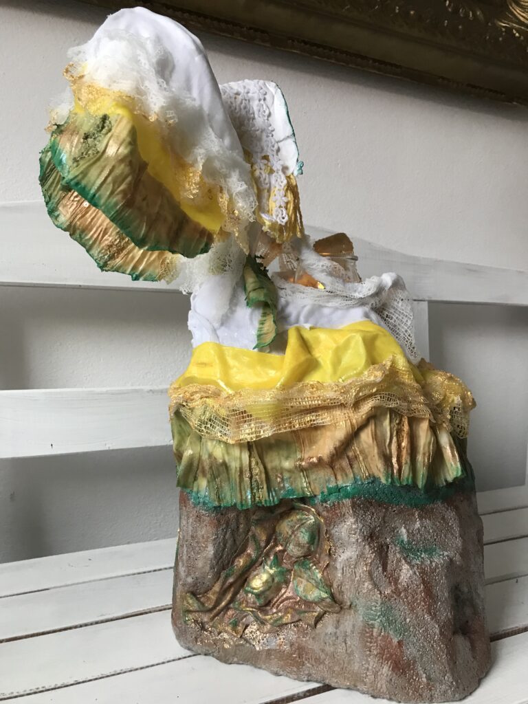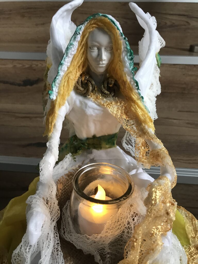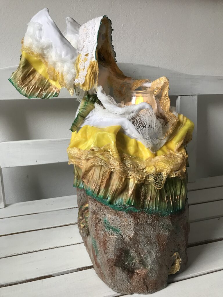 Socha sediaci anjel so sviecou – farebná