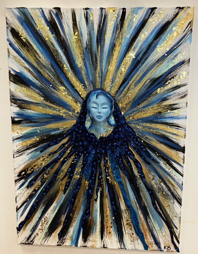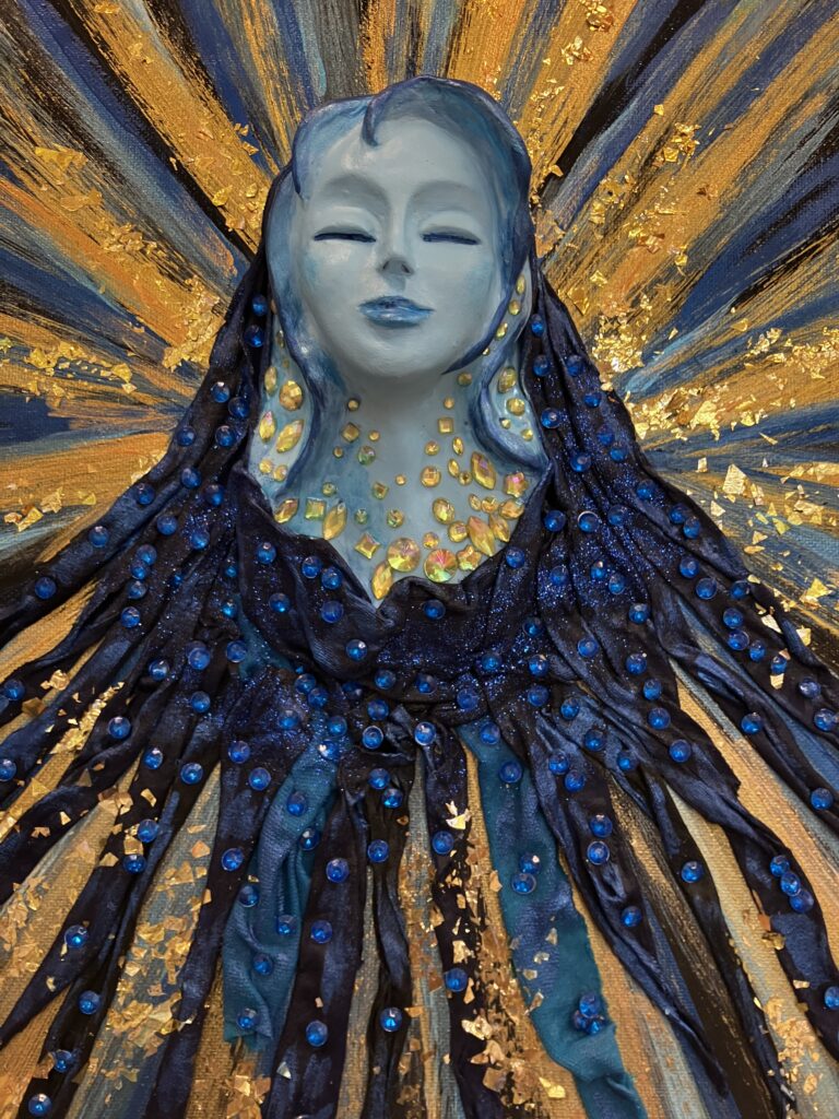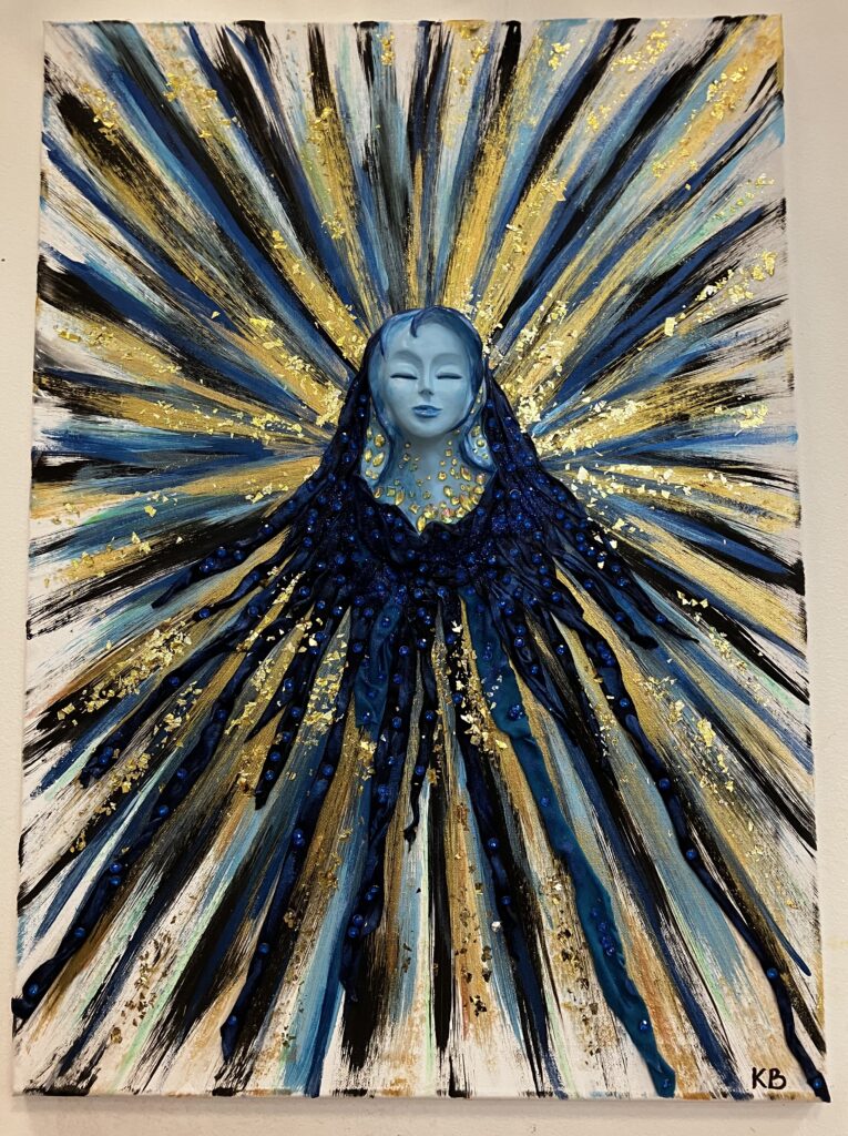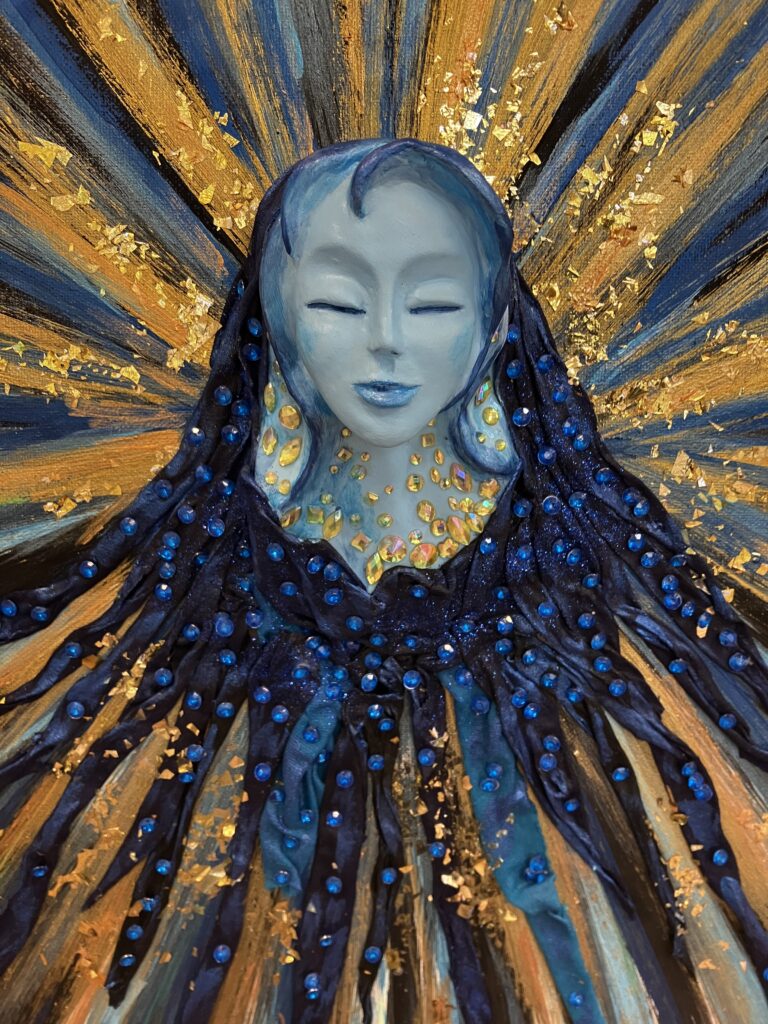 Ručne modelovaná tvár anjela, rozmery obrazu 50/70cm