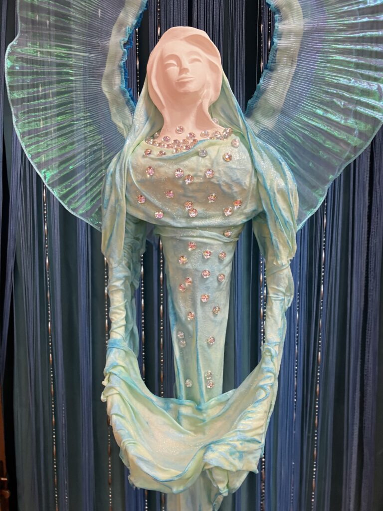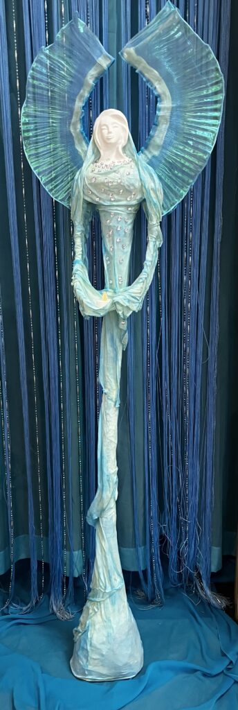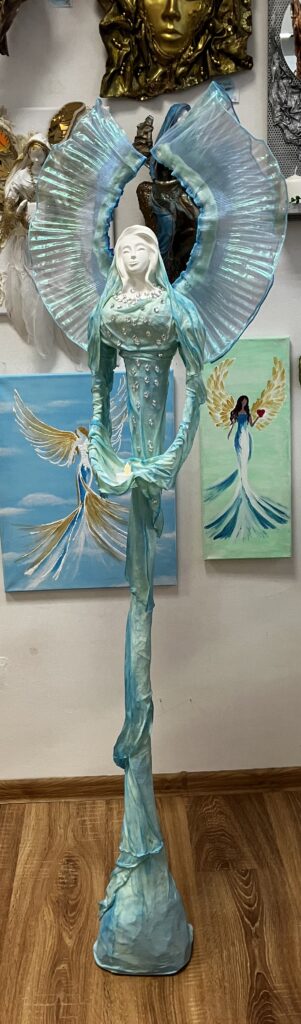 Paverpol, Acryl, ručne modelovaná tvár , tyrkys prevedenie, ozdobné kamienky V:151cm
