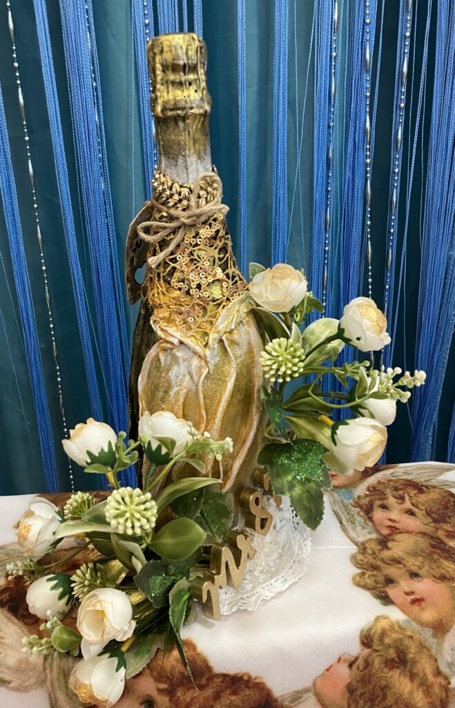 Plná fľaša , Paverpol, ozdoby, kvety, Acryl, lak