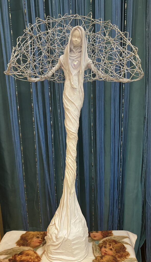Anjel s atypickými kridlami a srdiečkom Pridané: 27. júla 2023 Sochy Paverpol, dekorácia krídel, kovové srdiečko, V:67cm, Š:39cm