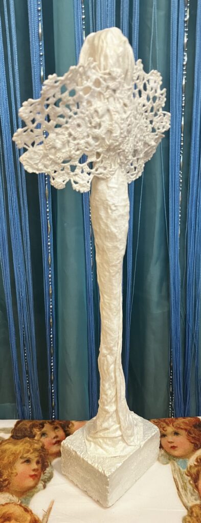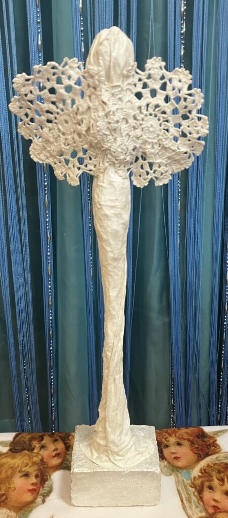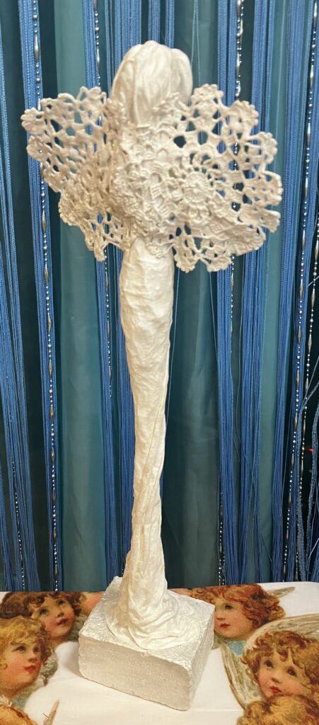 Paverpol, Acryl farba, perleťové trblietky,háčkované krídla, V:49cm, Š:20cm