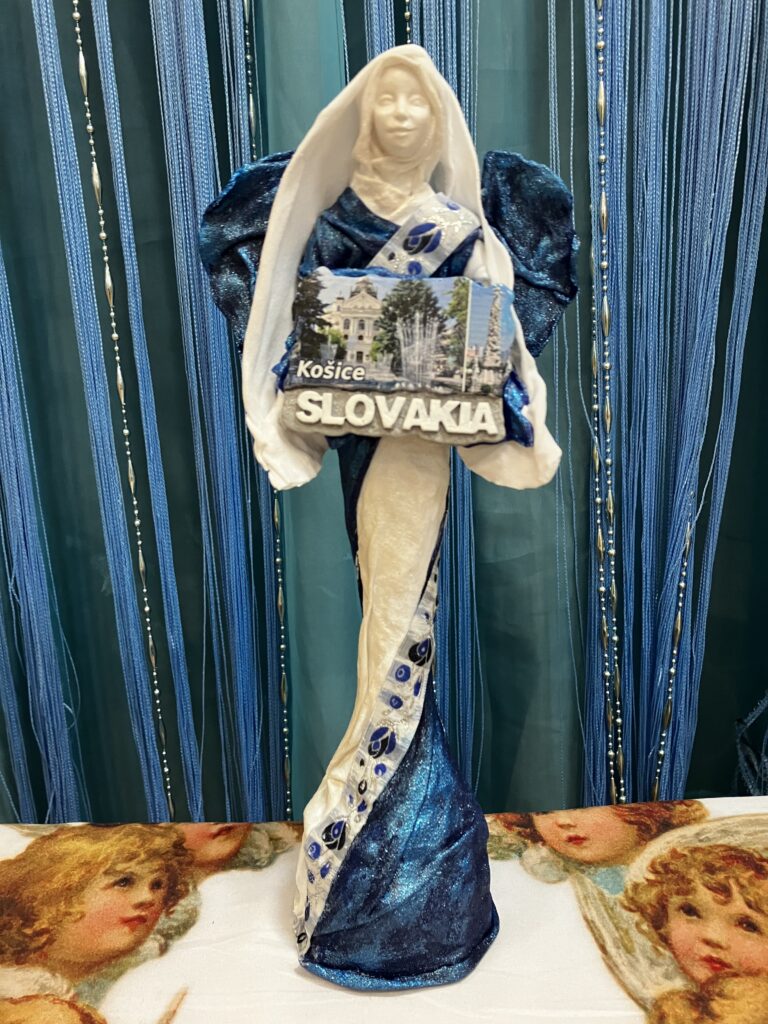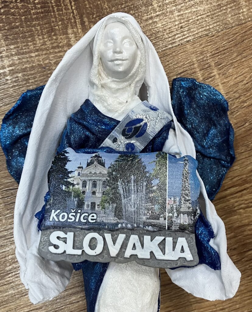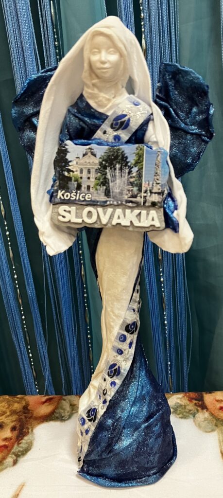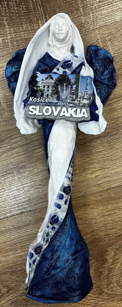 Paverpol, Acryl farba, magnetka krajiny a mesta, ľudová krajka, V:28cm, Š:14cm