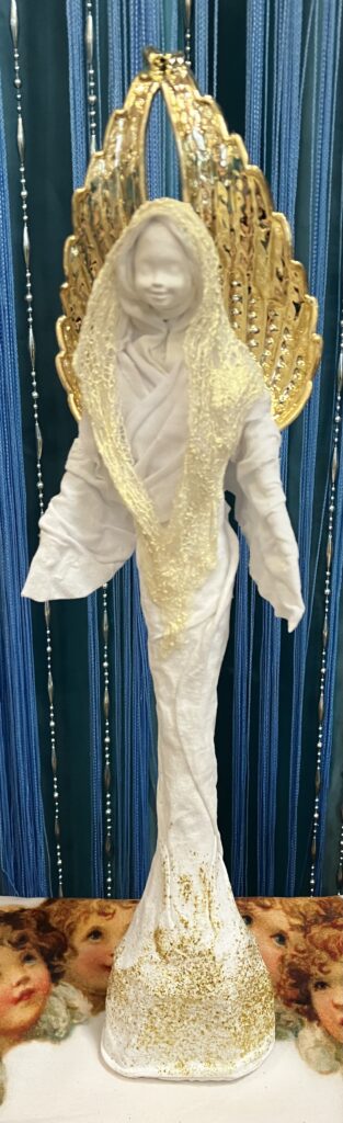 Anjel zlaté krídla so zlatom na šatách