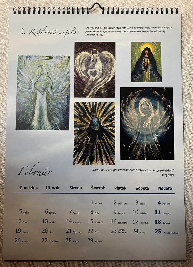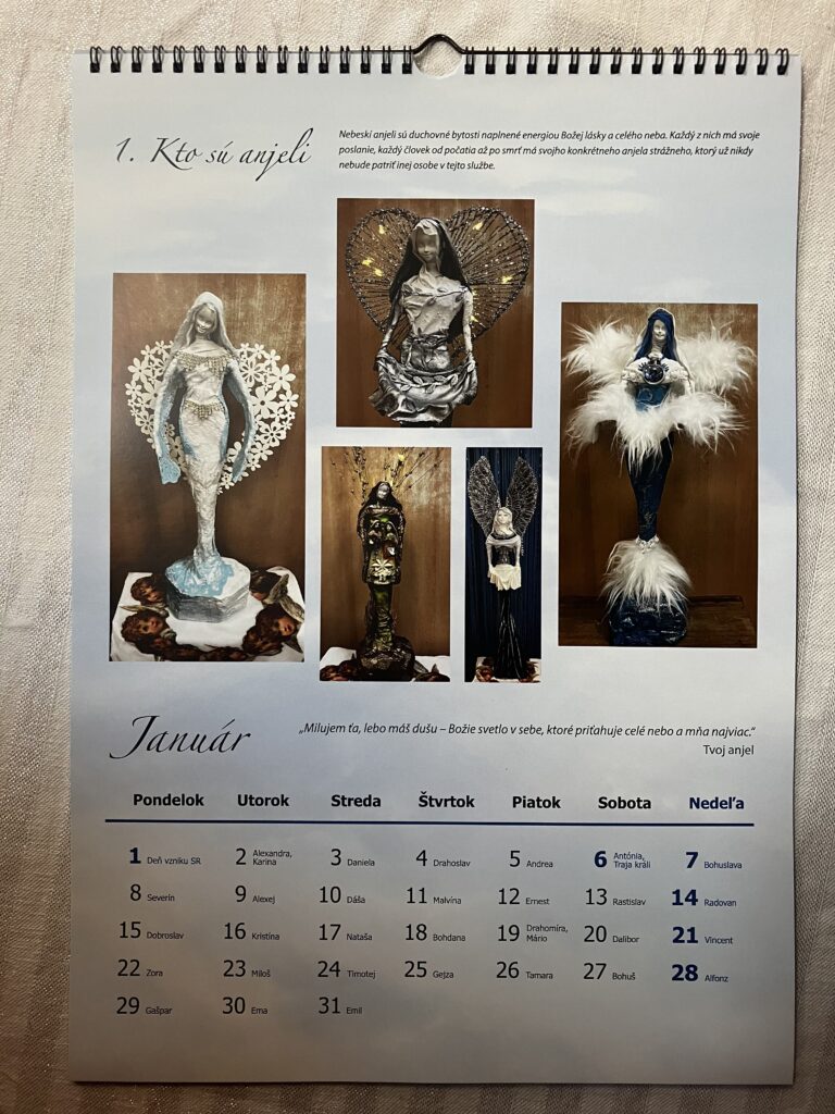 Nástenný kalendár 42/30cm s lesklou , pevnou prednou fóliou plný anjelských poznatkov, odkazov a diel zo Svetanjelov🙏🏻👼🏼