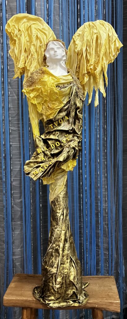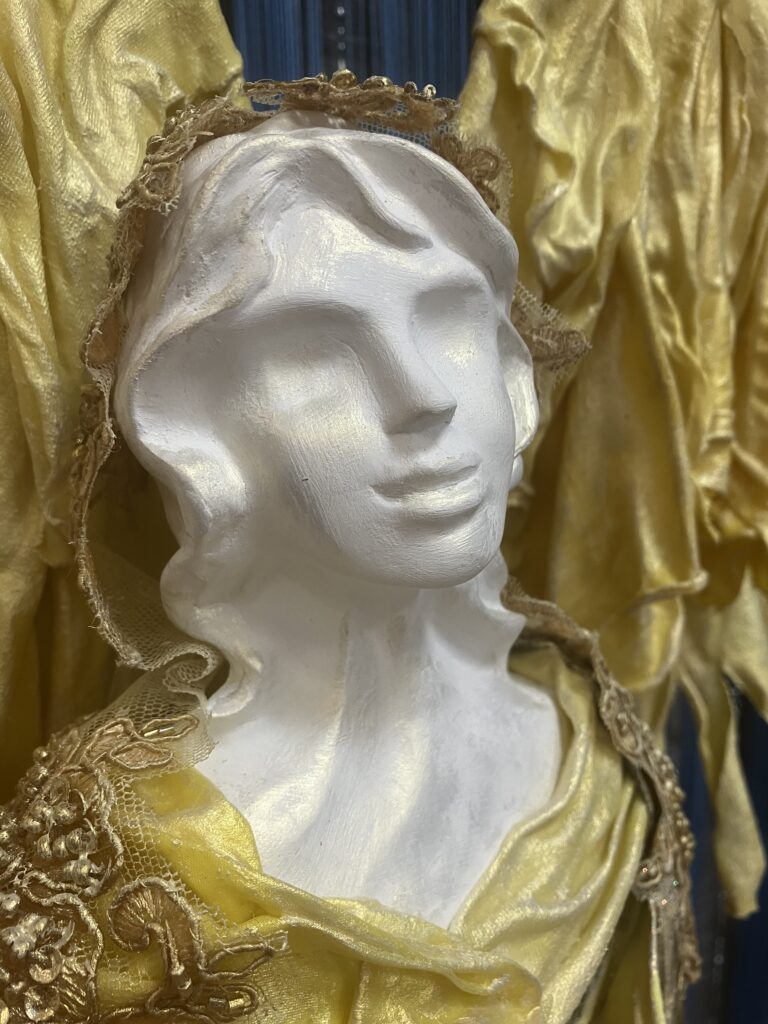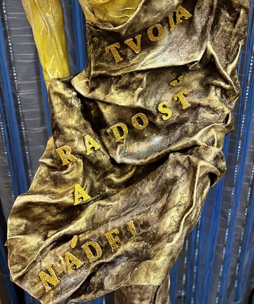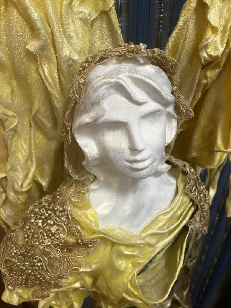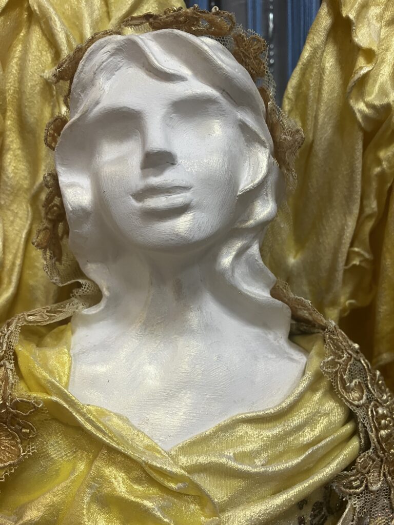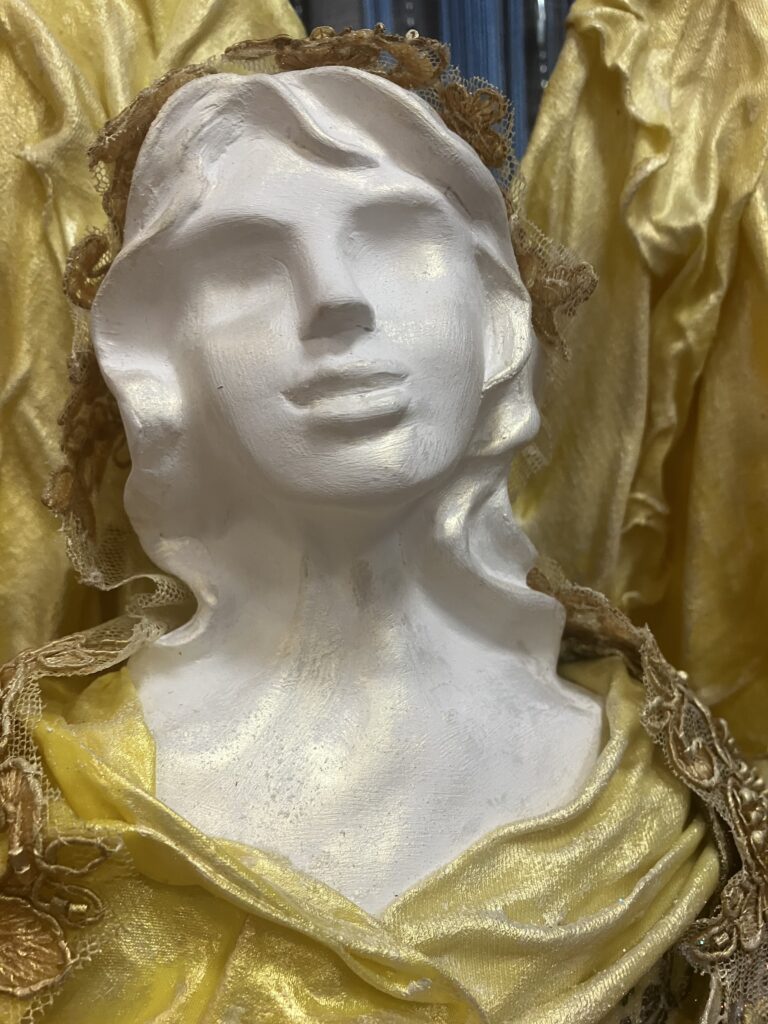 Paverpol, ručne modelovaná tvár, ozdoby,V:99cm, Š:42cm,nápis:tvoja radosť a nádej