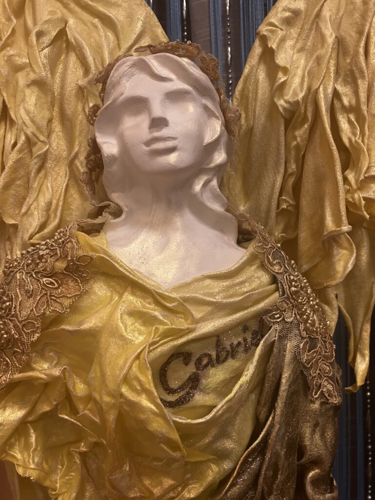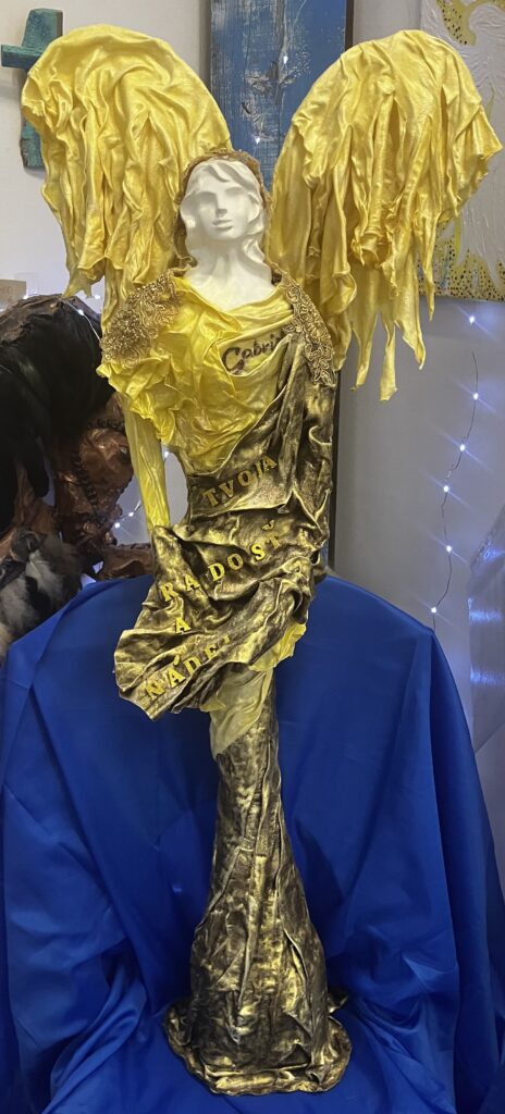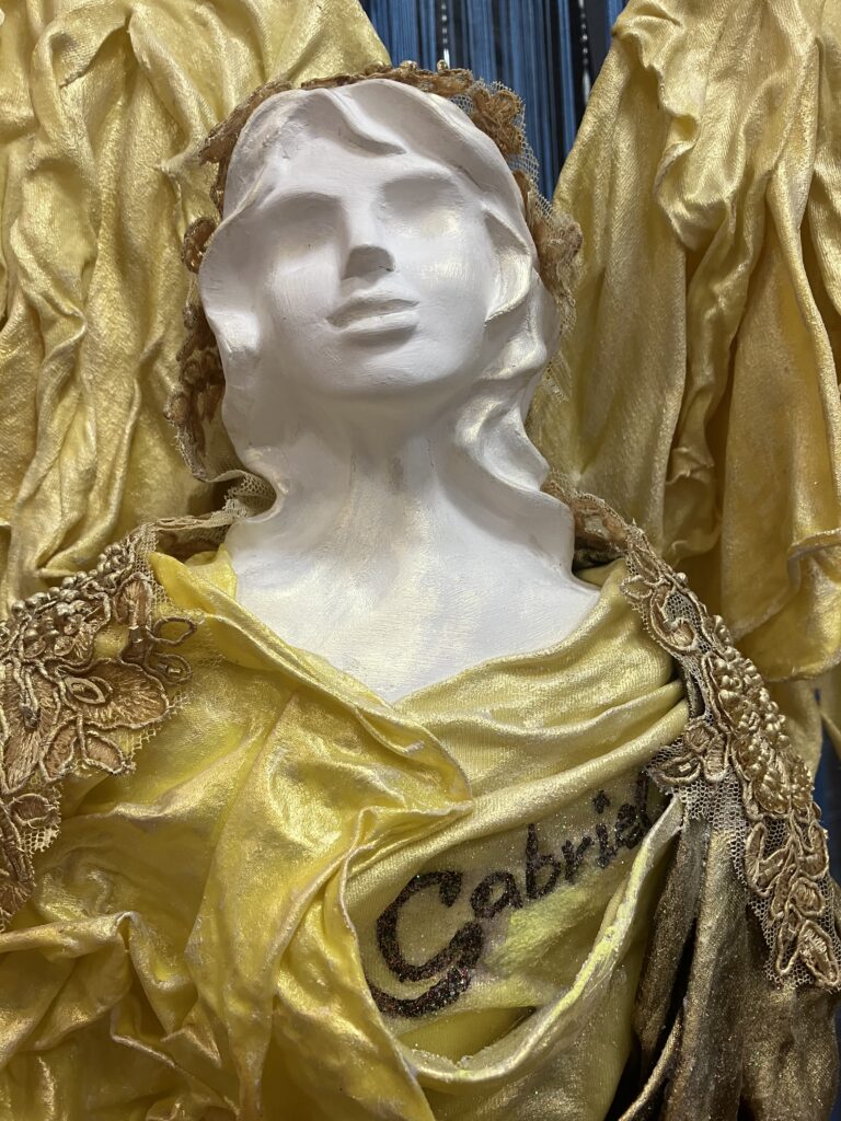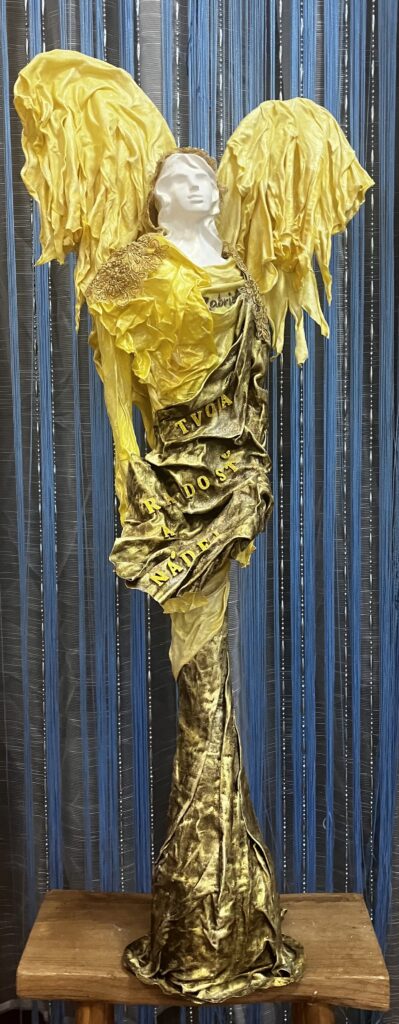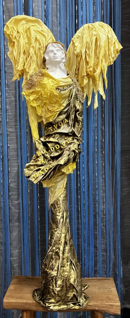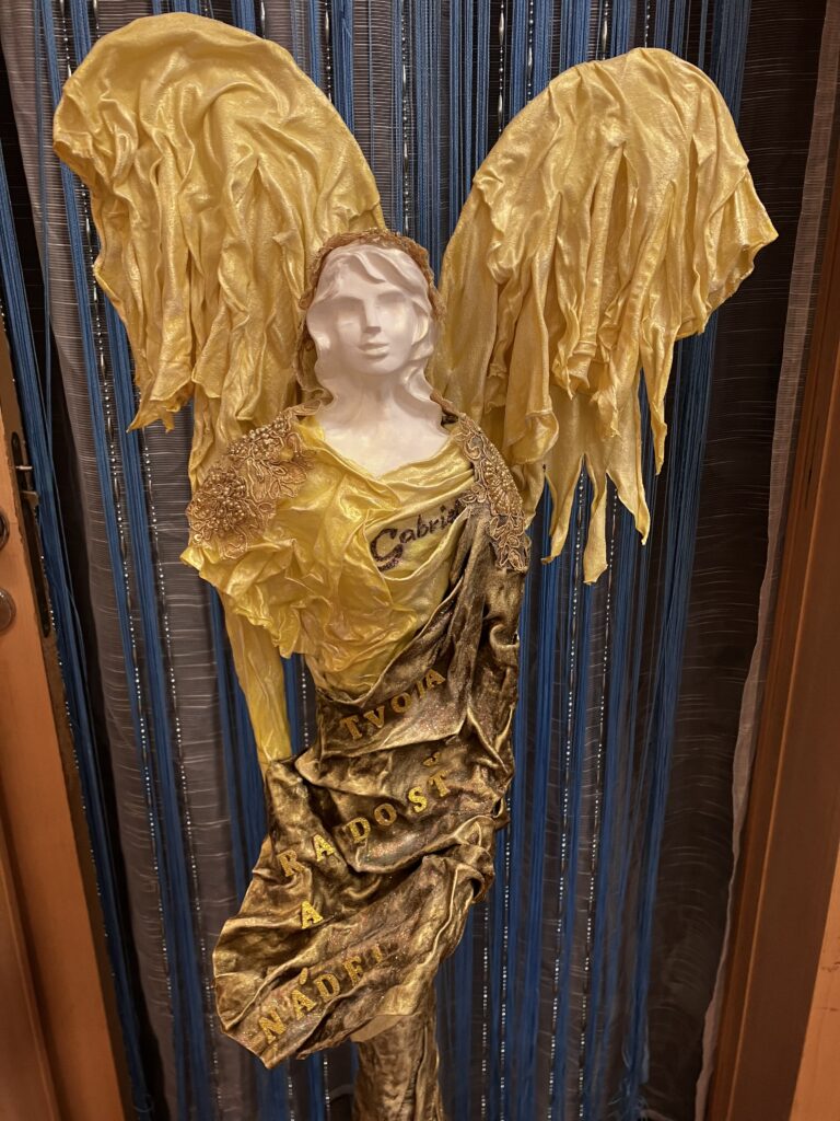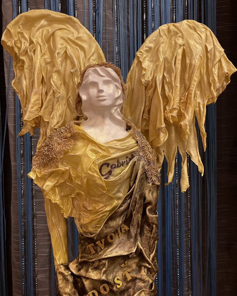 Paverpol, ručne modelovaná tvár, ozdoby,V:99cm, Š:42cm,nápis:tvoja radosť a nádej