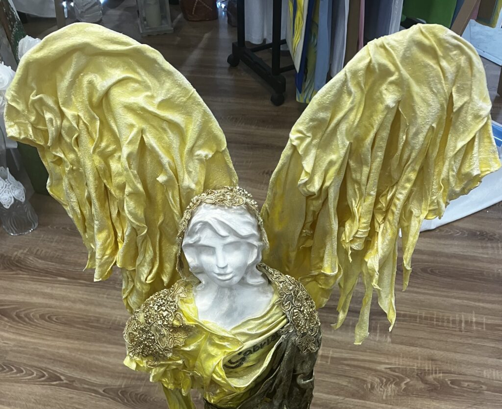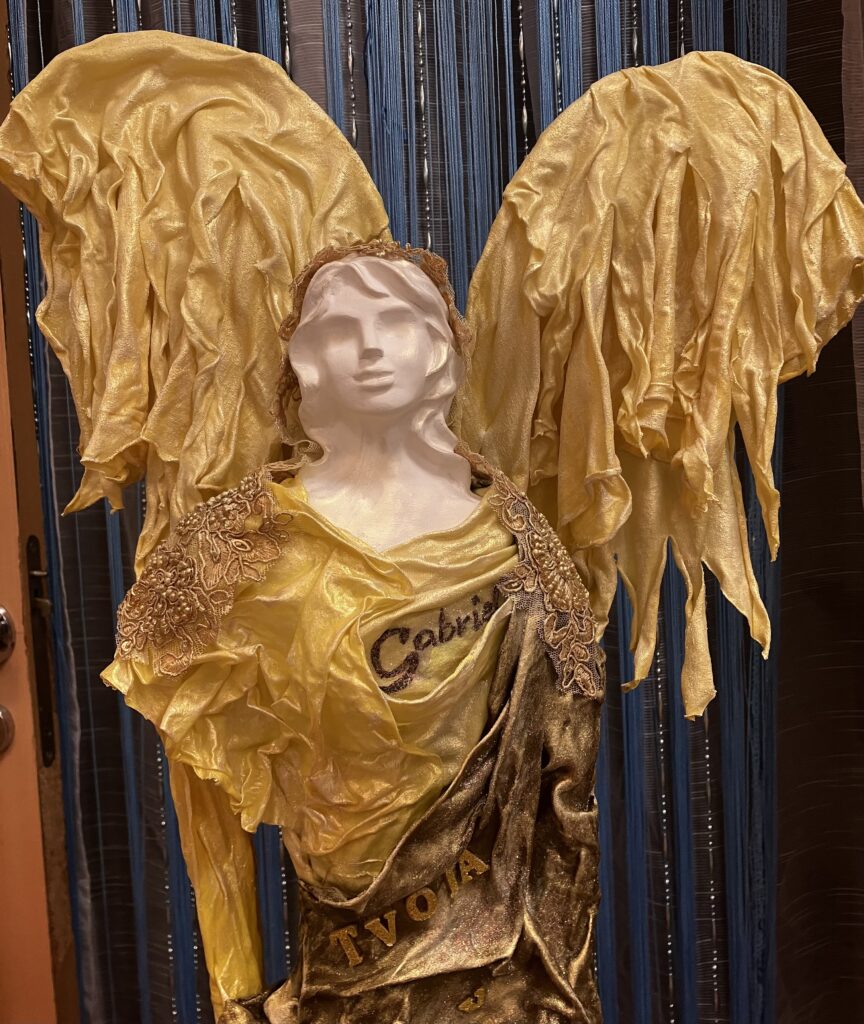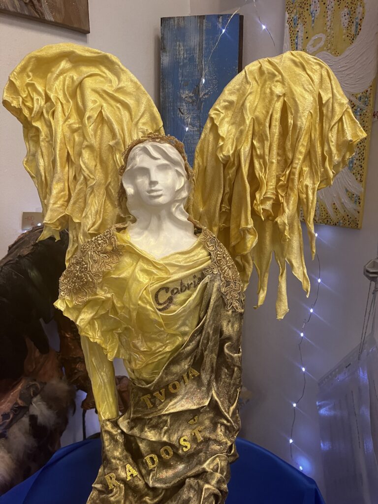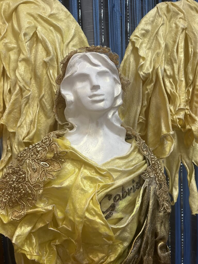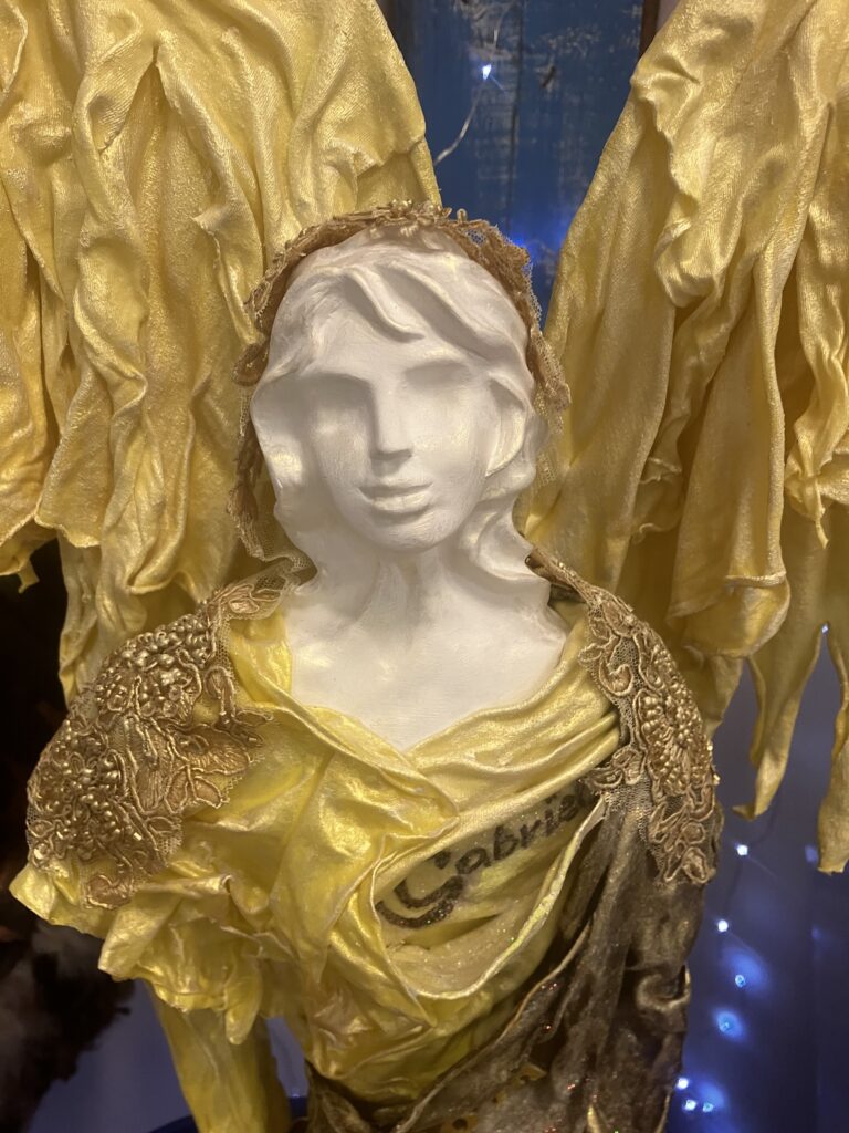 Paverpol, ručne modelovaná tvár, ozdoby,V:99cm, Š:42cm,nápis:tvoja radosť a nádej