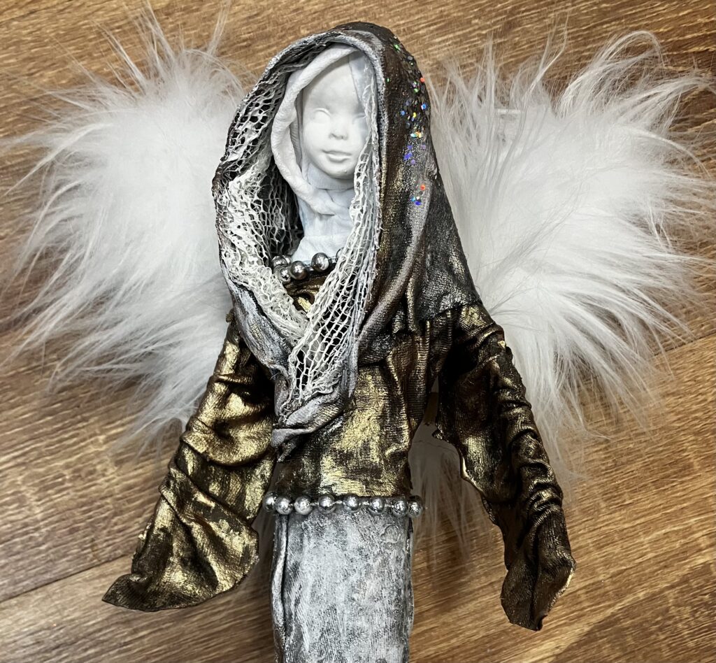 Paverpol, trblietky, kožušinkové krídla, acryl