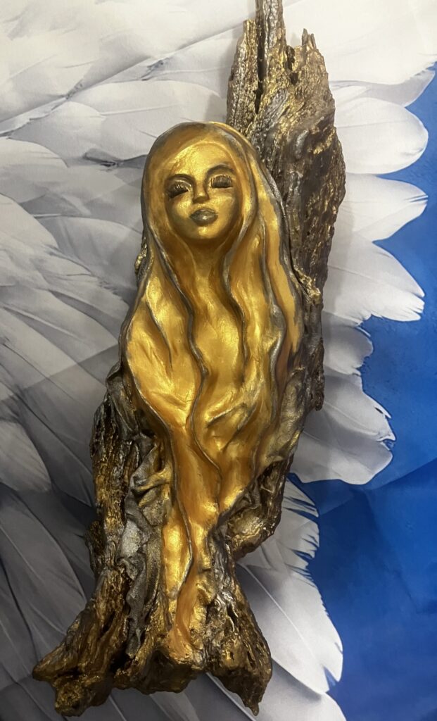 Drevený samorast, Paverpol, Acryl, ručne modelovaná tvár,mihalnice